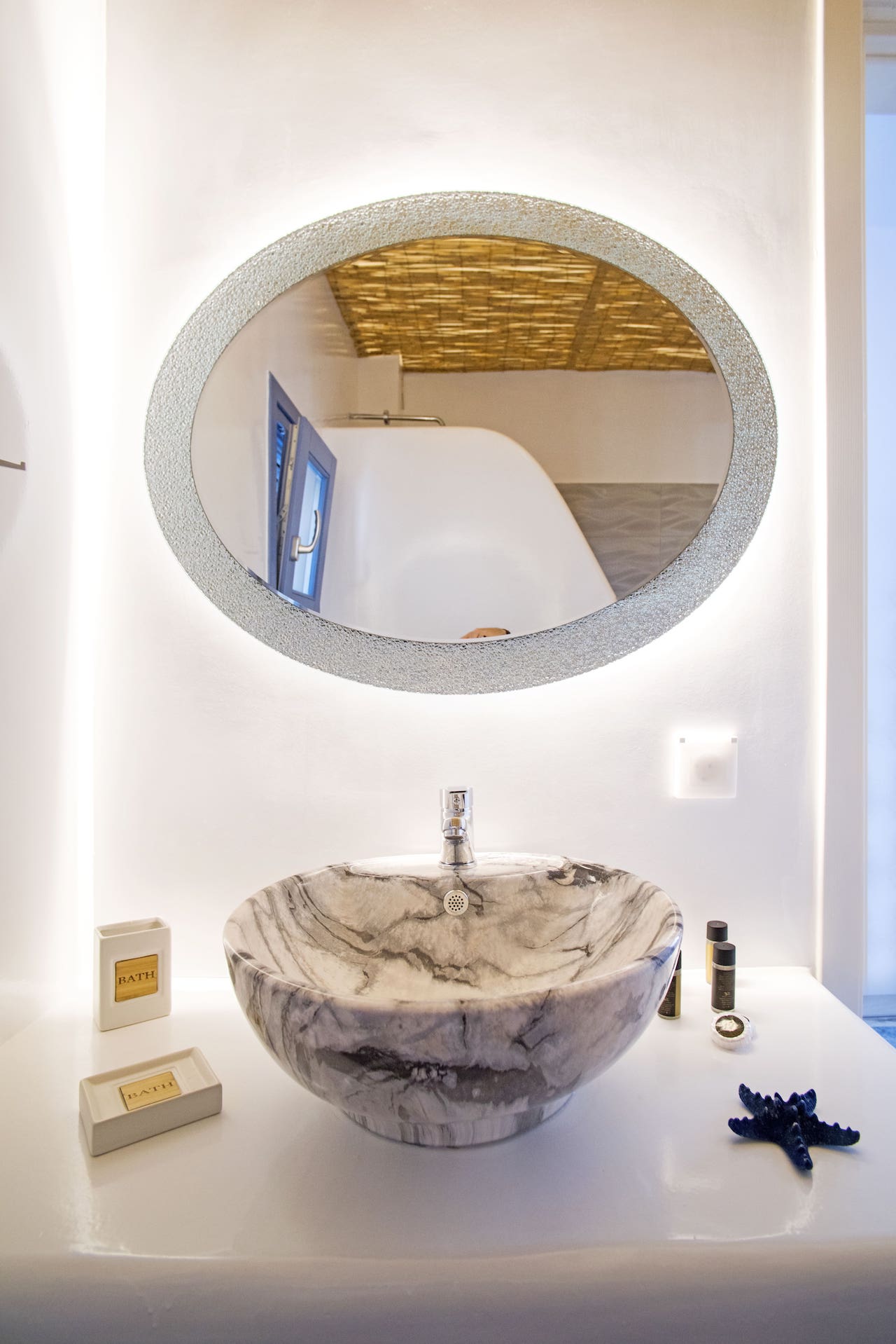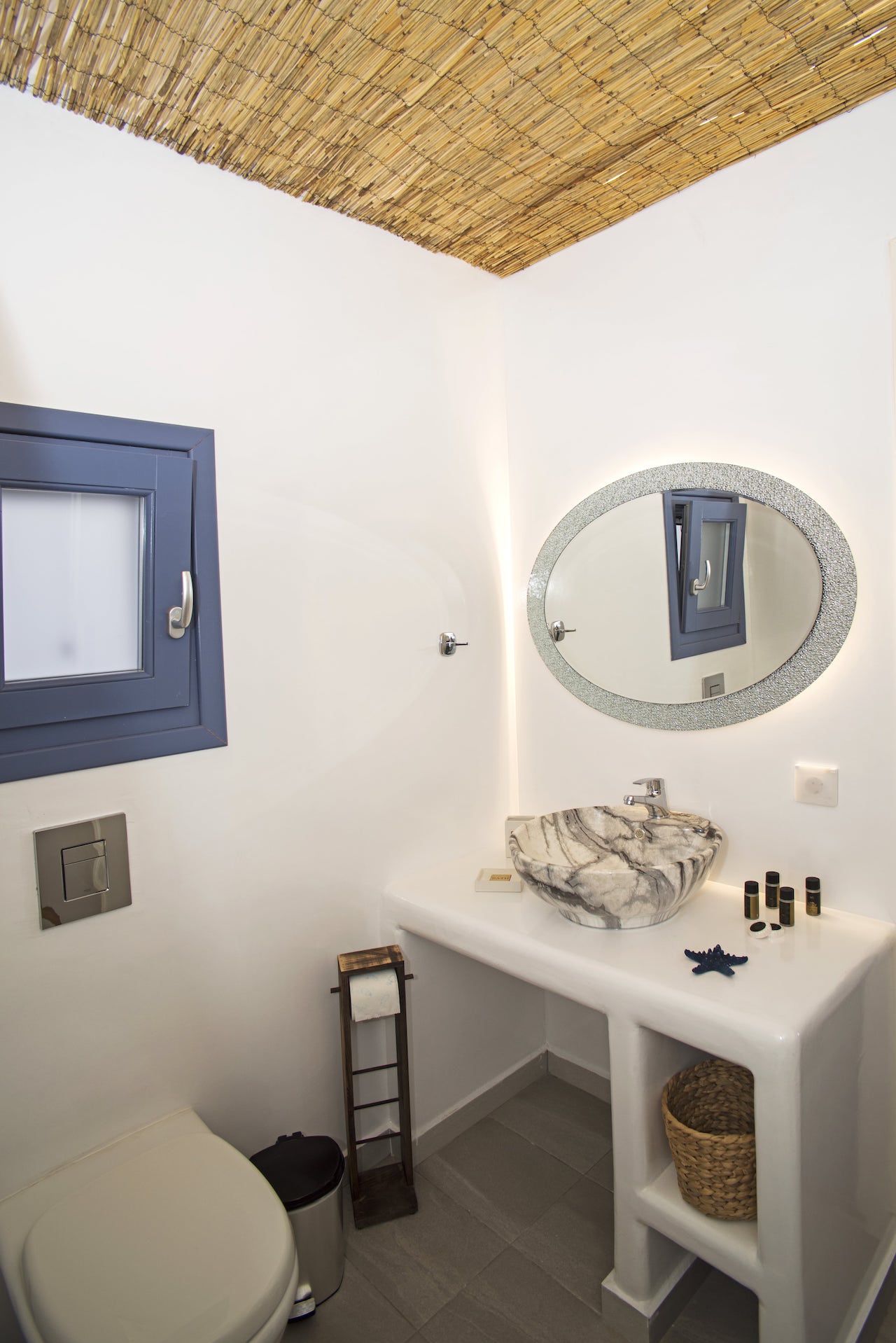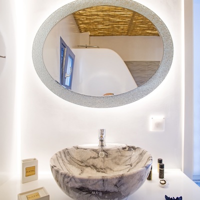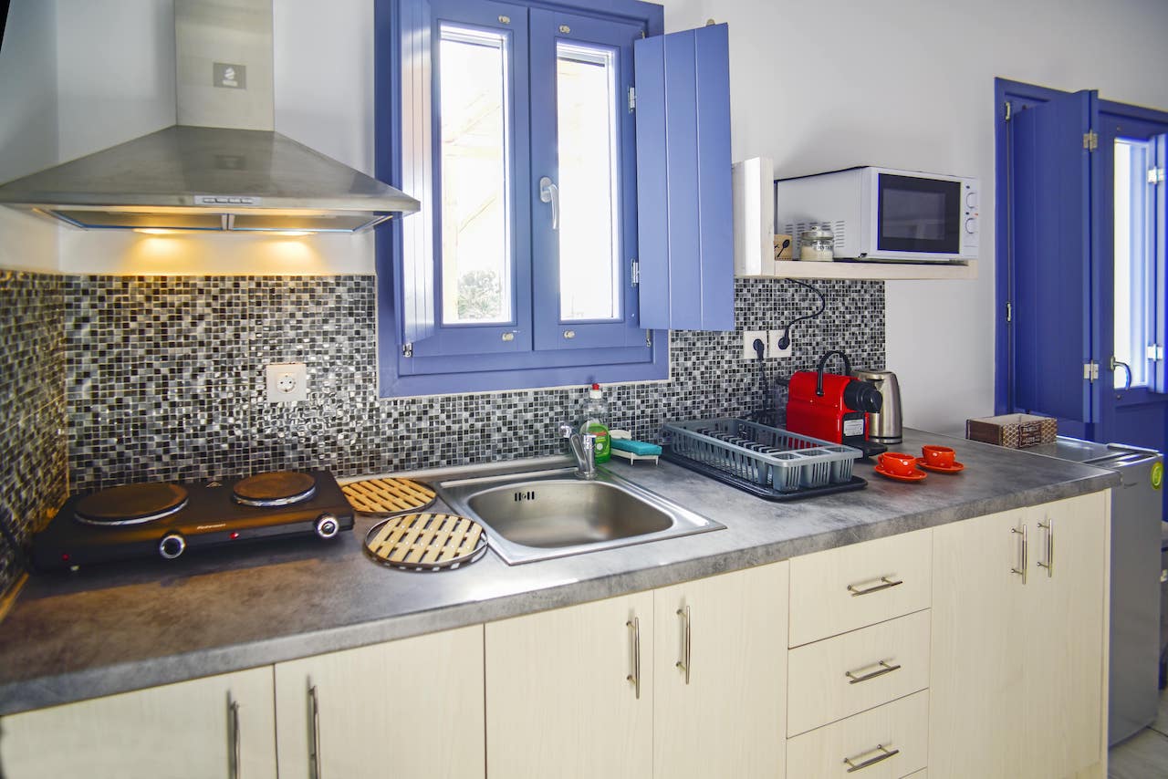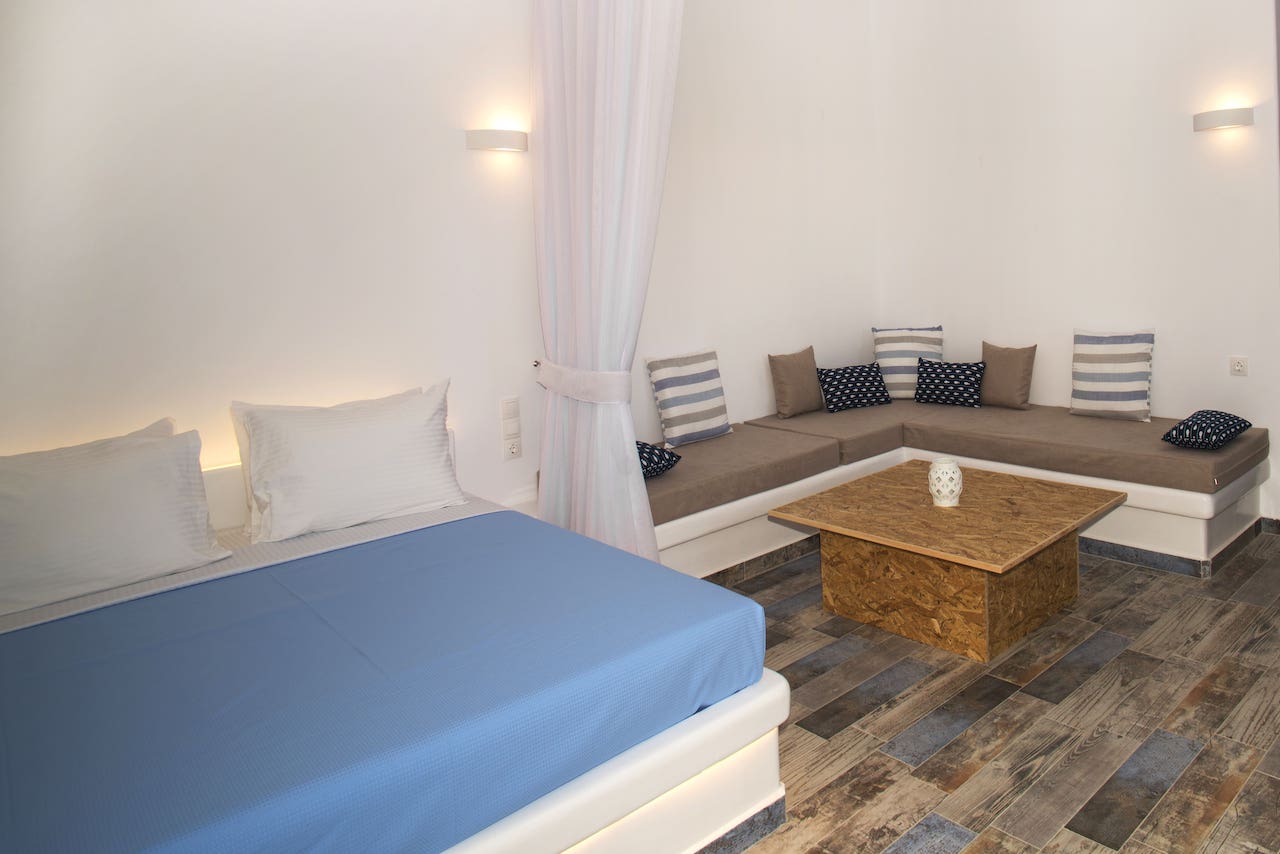 The sky meets the sea in an infinite blue utopia all around in Santorini Island. Feel refreshed in Sky Apartment decorated with soft blue colors all inspired from the sky pallet. In this 48 square-meters main floor apartment, you’ll find one cozy king-size bed and one sofa bed in the living room. The apartment is air-conditioned with fully equipped kitchen providing the necessary kitchenette. You’ll also find a 55" smart TV with satellite TV and Netflix are also provided. A digital safe deposit box is provided to keep your valuables secure. Enjoy the pool view from your private furnished balcony or rest on private sunbeds by the pool.
